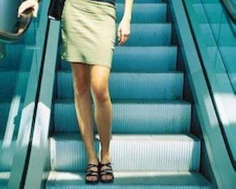 someone else, she looks behind her. Nobody there. I'm the only one on the escalator. He's cute. The escalator